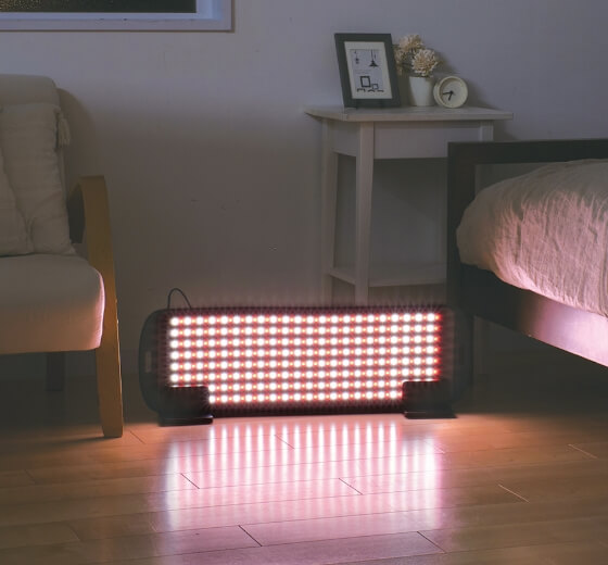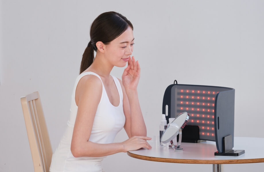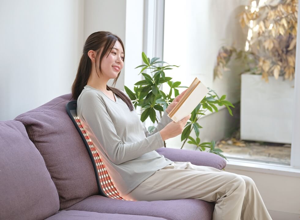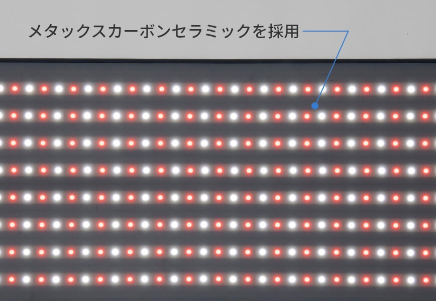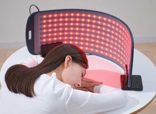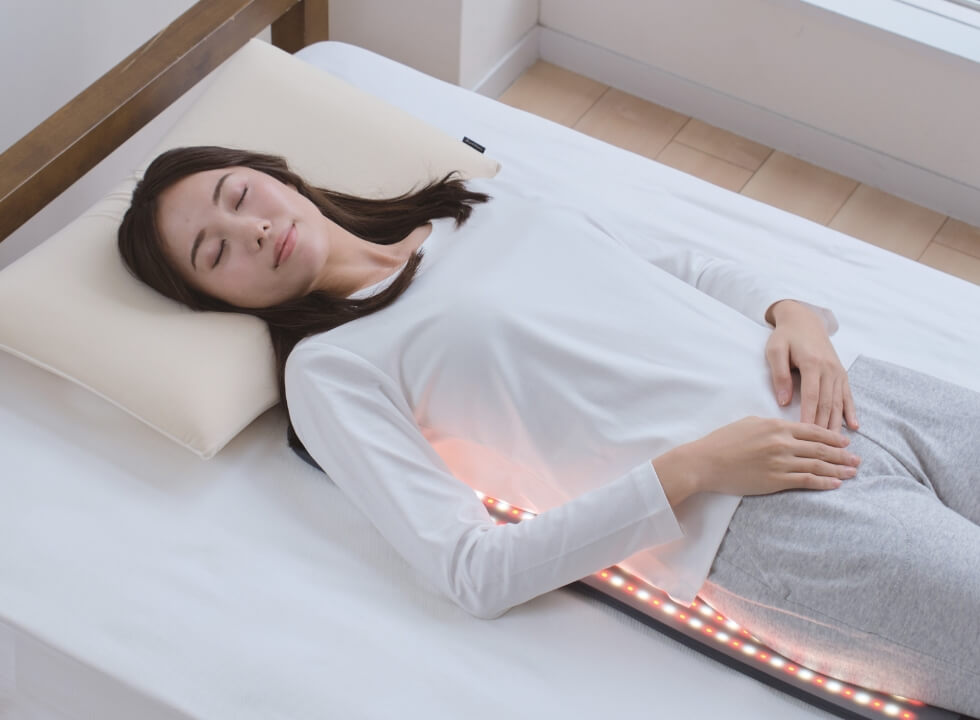 LEDをカバーするシリコーン部分に、独自素材の「メタックスカーボンセラミック」を採用。赤白合計352個のLEDから放出される「健光浴®」の光でカラダを包み込み、悩みにアプローチします。