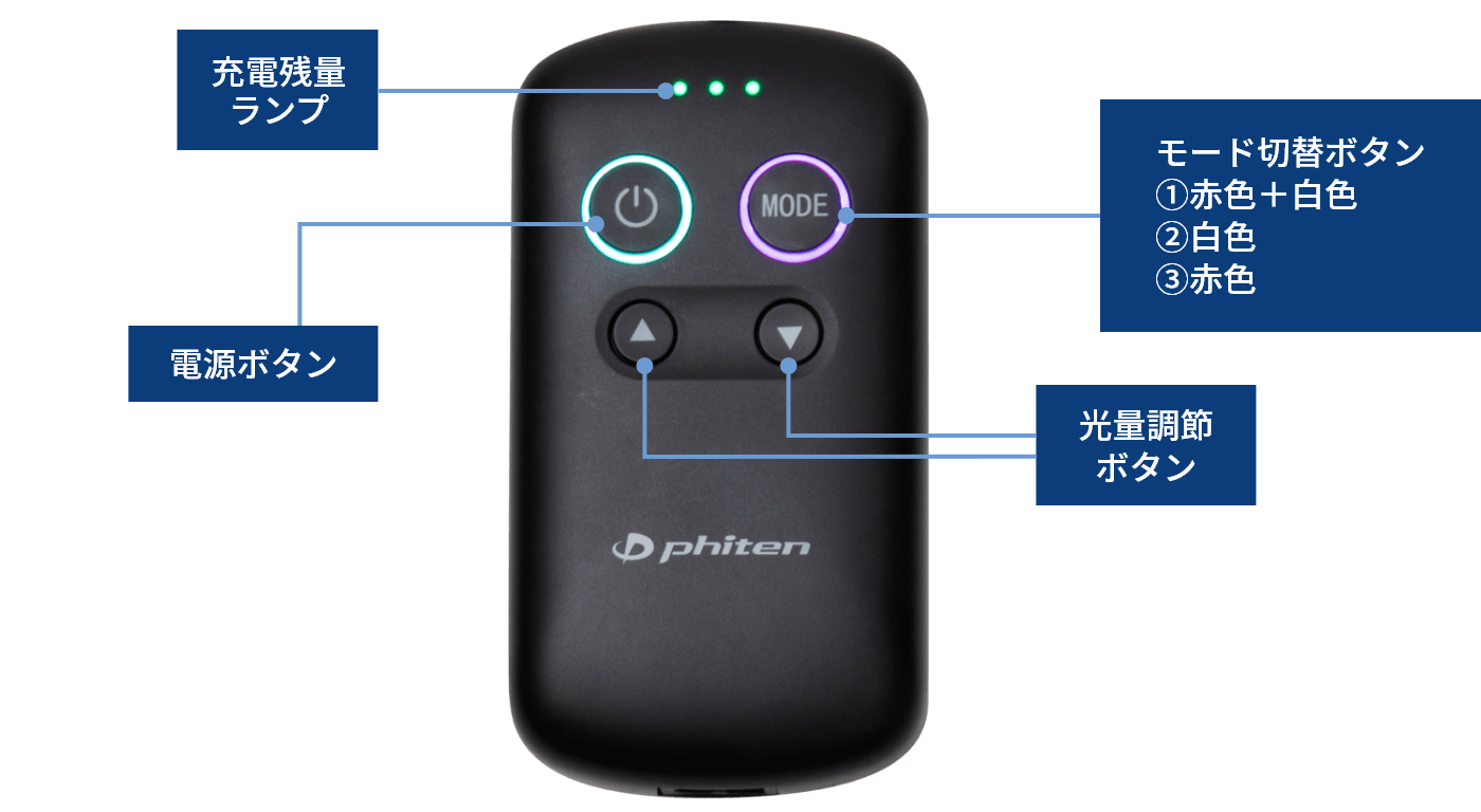 明るさは強・弱2段階。シーンに合わせて色と明るさを選べます。