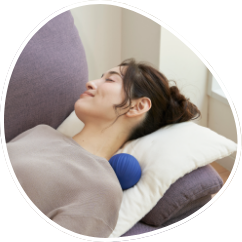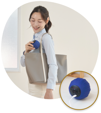 手で持たなくても、もたれたり寝転がったり体重をかけるだけで簡単にケアをすることができます。体重のかけ具合によってカラダへの圧を調整し、自分好みの刺激でケア。球体なので、使い方を限定することなく、様々な部位に使えます。